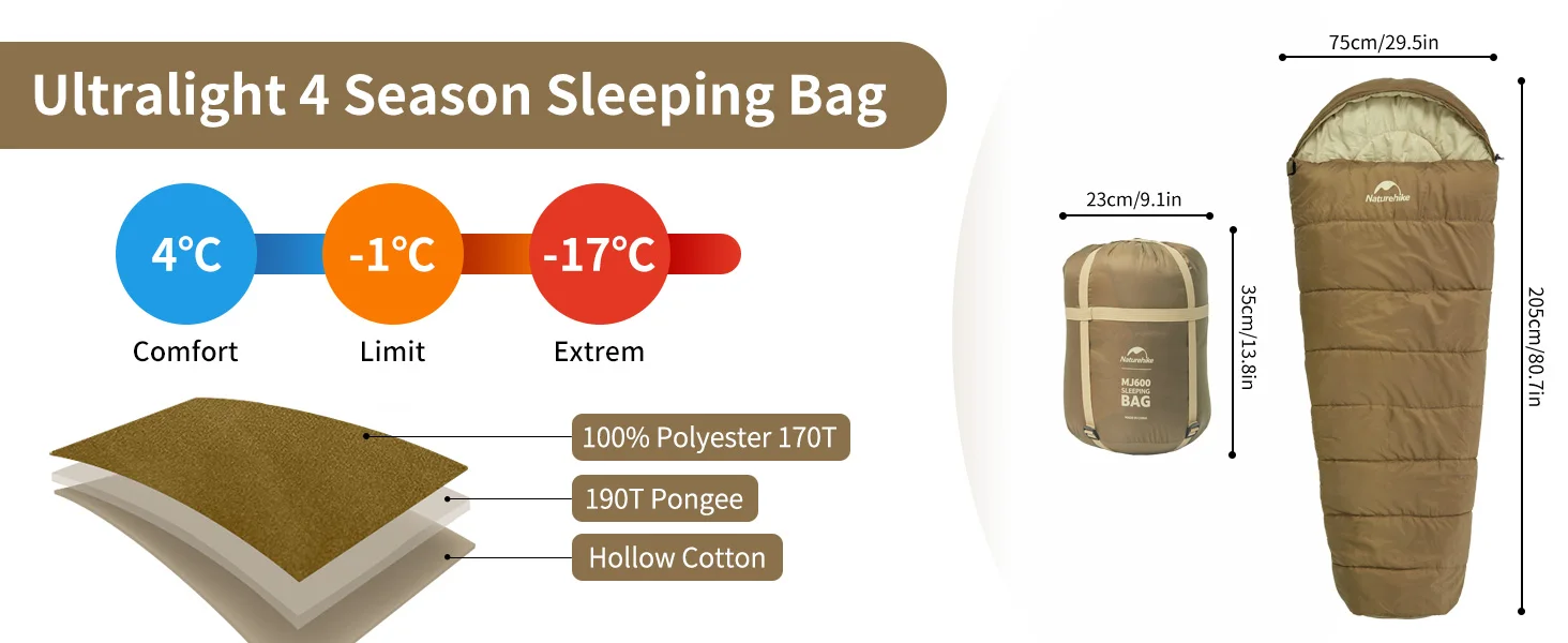 Naturehike Sleeping Bag MJ600 – Mummy Design, -12°C